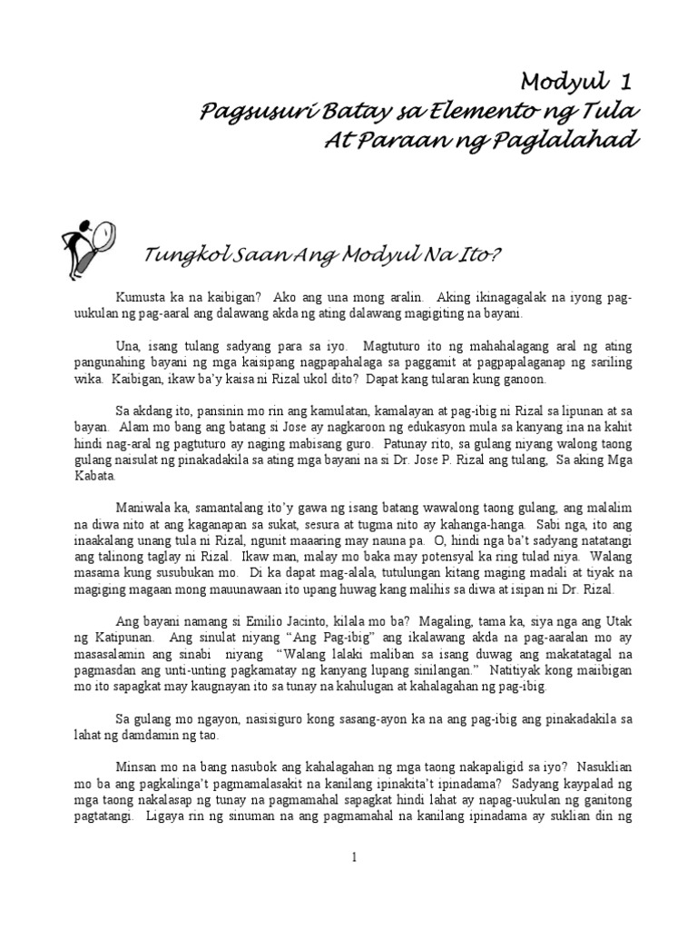 Modyul 1 Pagsusuri Batay Sa Elemento Ng Tula At Paraan Ng Pa Pdf