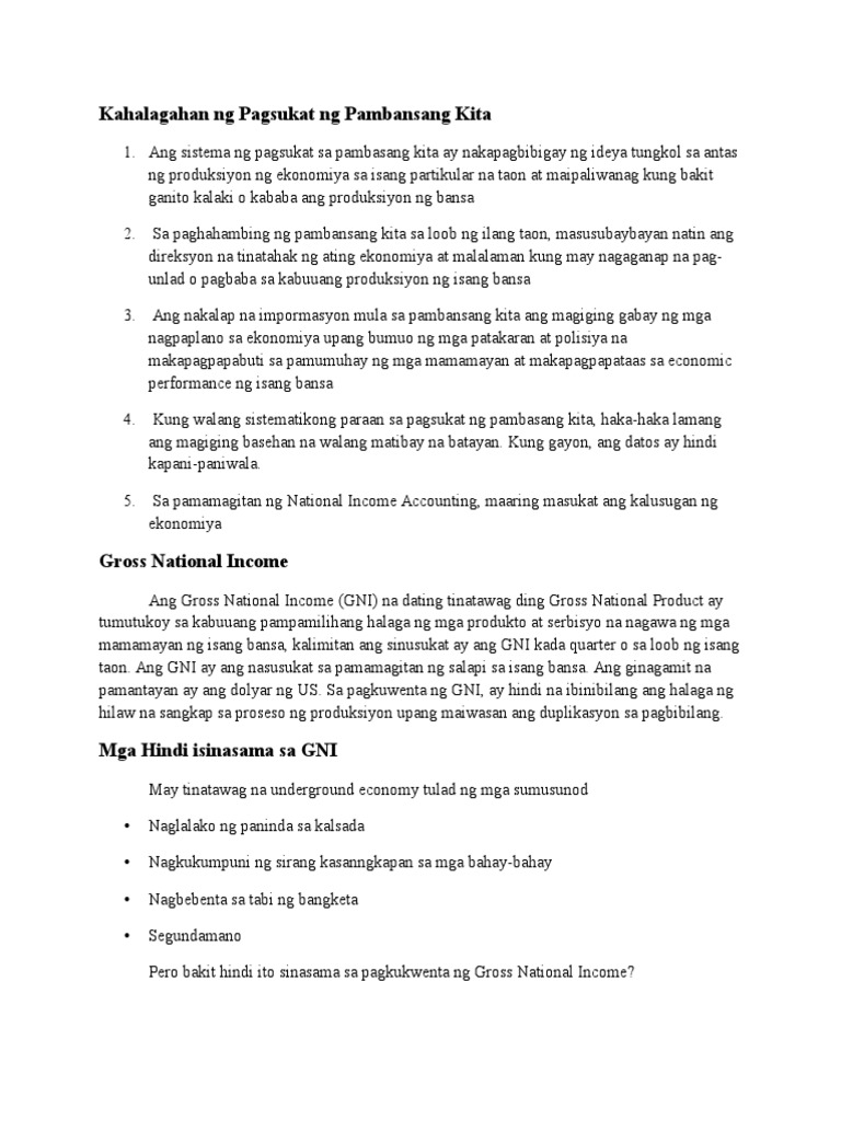 Kahalagahan Ng Pagsukat Ng Pambansang Kita