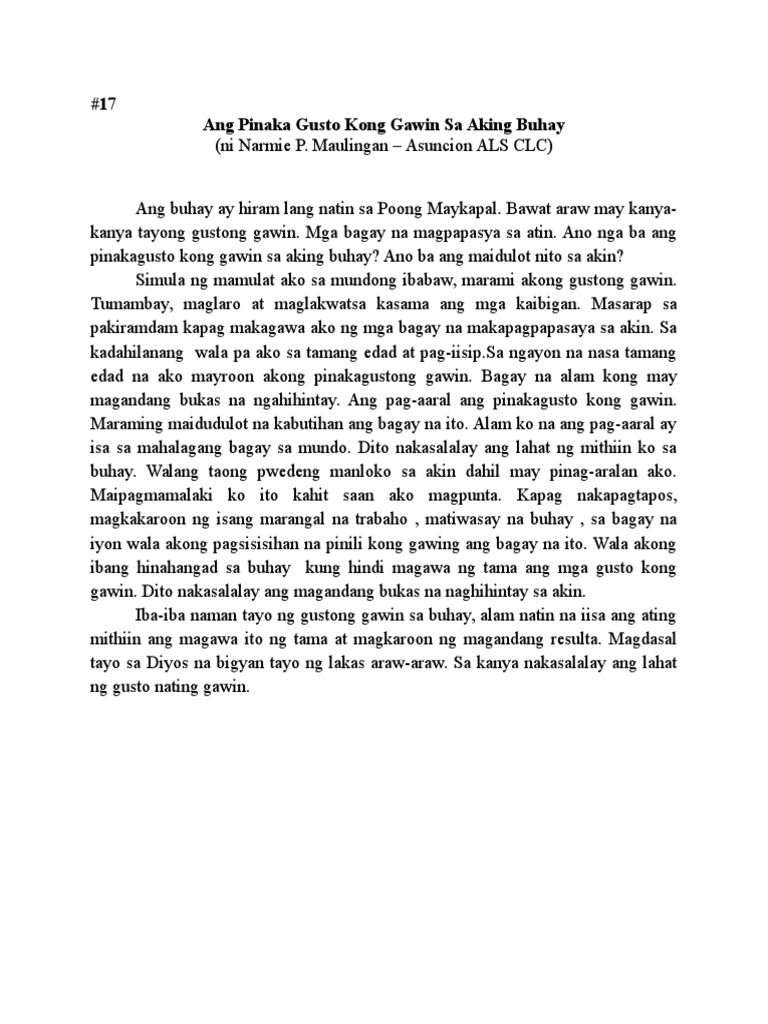 Nabibigyan ng kalayaan sa pamamahayag. Our skillful essay writers supply writing and editing services for academic papers. Mahalaga ang pagbasa sa buhay nga bawat tao sapagkat ito angnagsisilbing pangunahing kasangkapan sa pagtuklas ng karunungan kung baga ito ang gintongsusi na magbubukas ng pinto sa daigdig ng karunungan at kasiyahan.